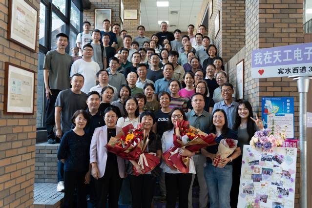 仪式最后,全体教师与两位老师在学院“芯光大道”上合影。镜头里,黄洁老师和陈伏荣老师的笑容里满是欣慰与期许。