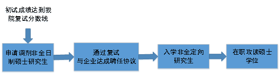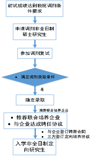 初试达到我院各专业领域复试分数线的考生,可申请调剂非全日制专业学位研究生,复试通过后,推荐企业录取为企业员工,入学非全日制研究生,在职攻读硕士学位。